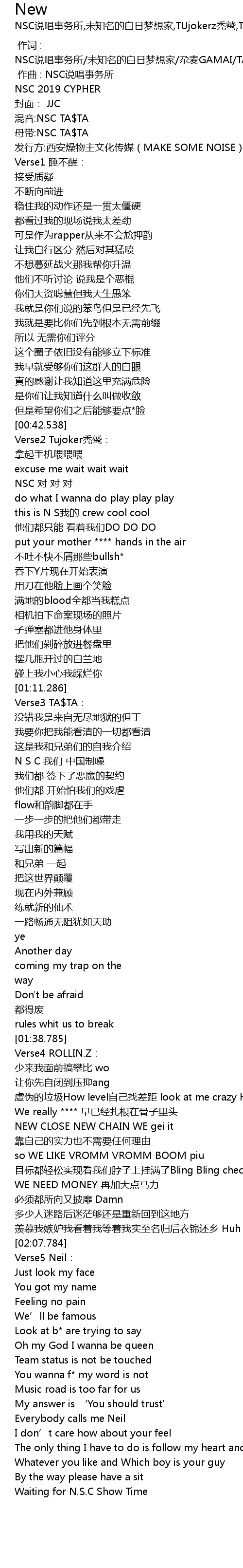 | [00:01.000] | 作曲 : NSC说唱事务所 |