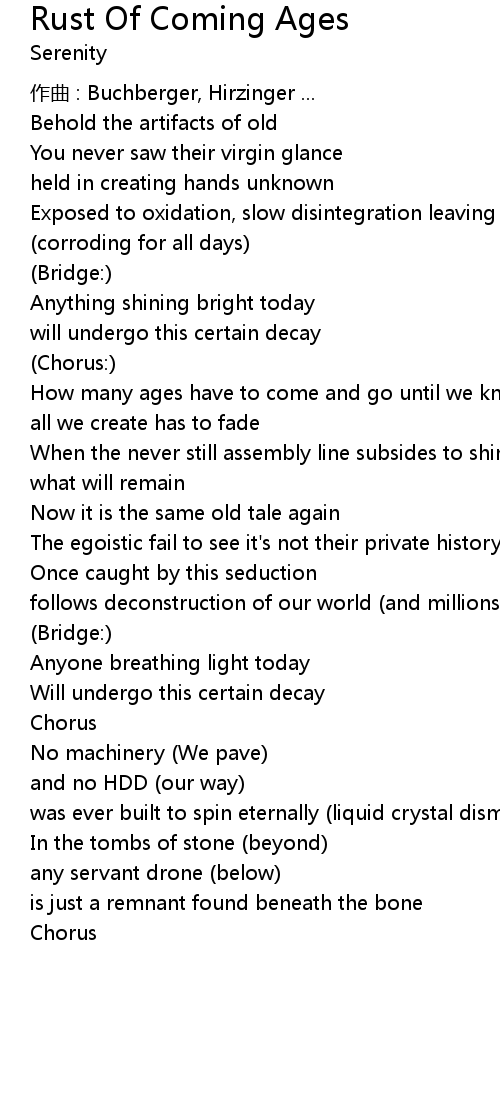 | Song | Rust Of Coming Ages |