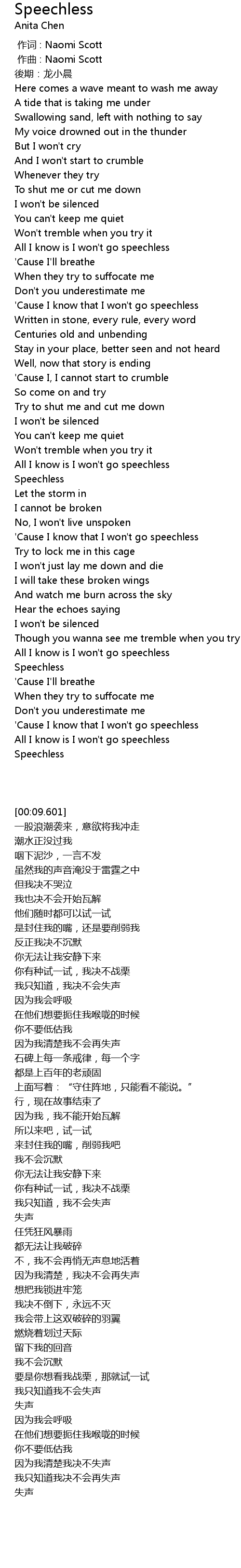| [02:22.849] | ' Cause I know that I won' t go speechless |