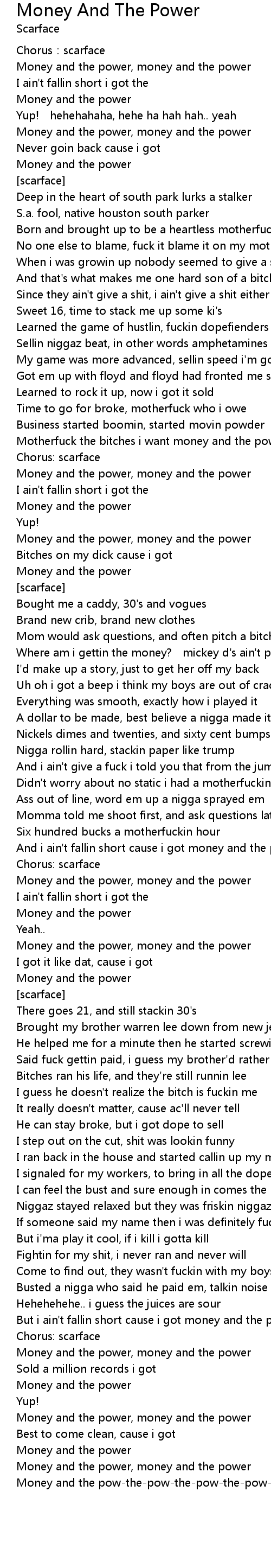 | Motherfuck the bitches i want money and the power.. yup! | |