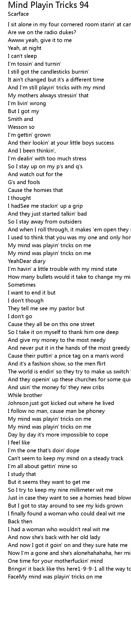 And I'm still playin' tricks with my mind |