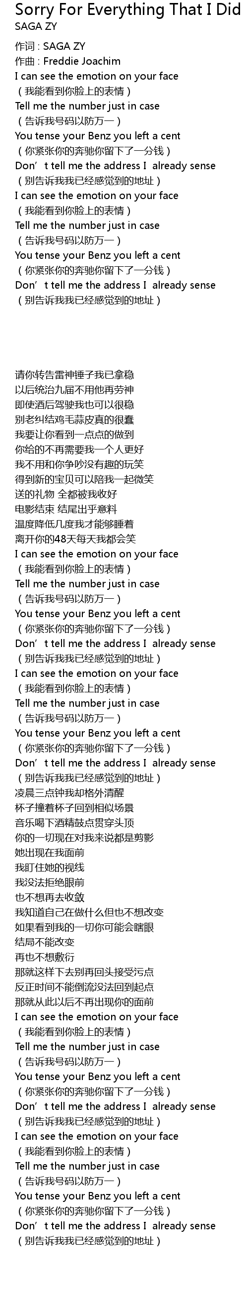 | 作词 : SAGA ZY | |