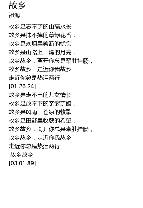 | [02:35.35] | 故乡故乡,走近你我故乡 |