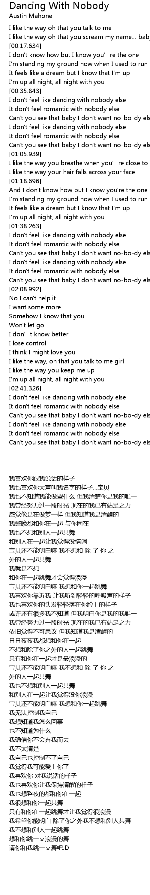 | [00:51.925] | I don't feel like dancing with nobody else |