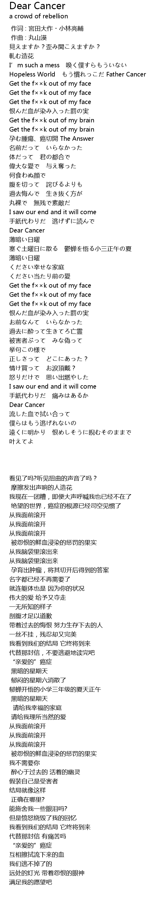 | [00:36.82] | Hopeless World guàn Father Cancer |