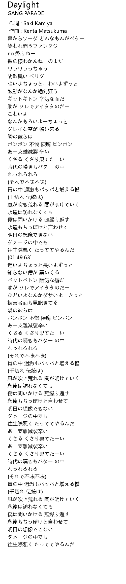 | [02:35.05] | 胃の中 過激もパッパと増える憎 |