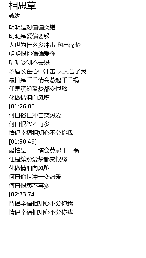 | [01:38.55] | 情侣幸福相知心不分你我 |
