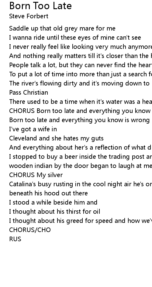 CHORUS Born too late and everything you know is gone, gone |