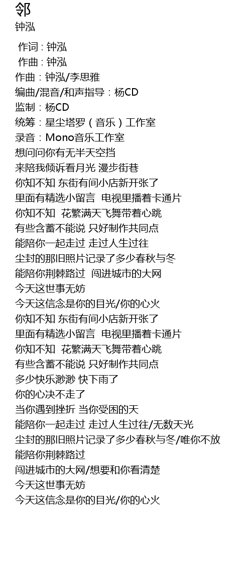 | [00:00.000] | 作词 : 钟泓 |