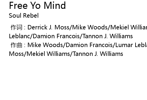 | [00:00.00-1] | 作词 : Derrick J. Moss/Mike Woods/Mekiel Williams/Lumar Leblanc/Damion Francois/Tannon J. Williams |