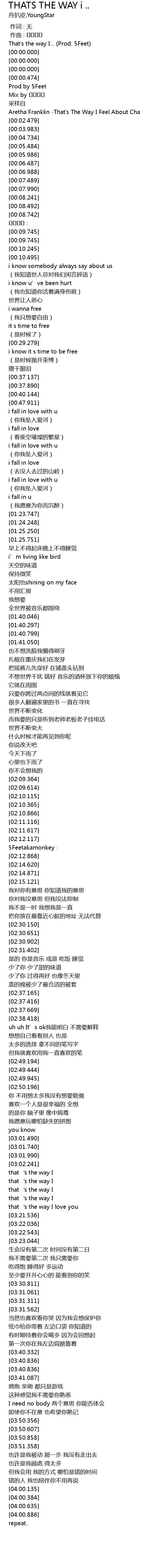 | [00:00.000] | That's the way I... (Prod. 5Feet) |