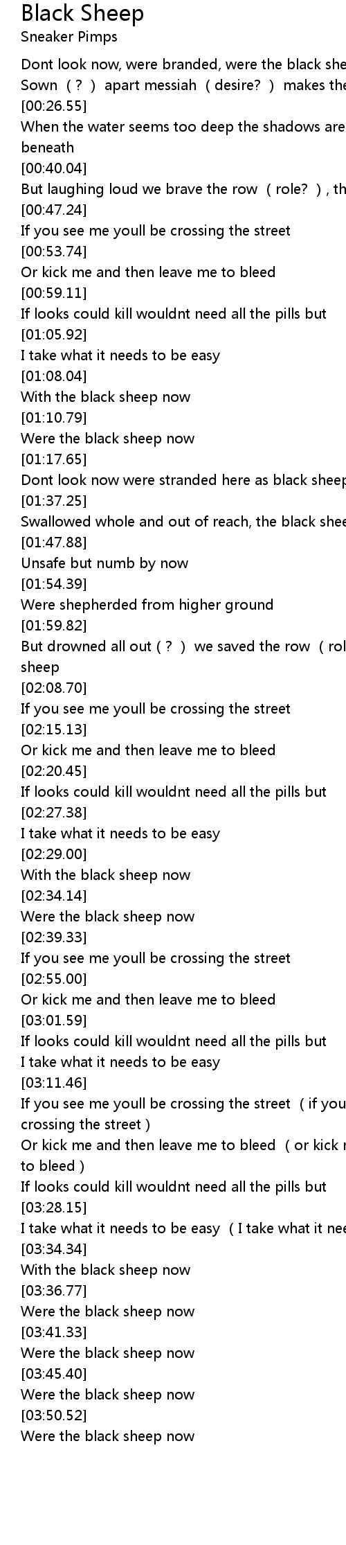 | [00:11.30] | Dont look now, were branded, were the black sheep |