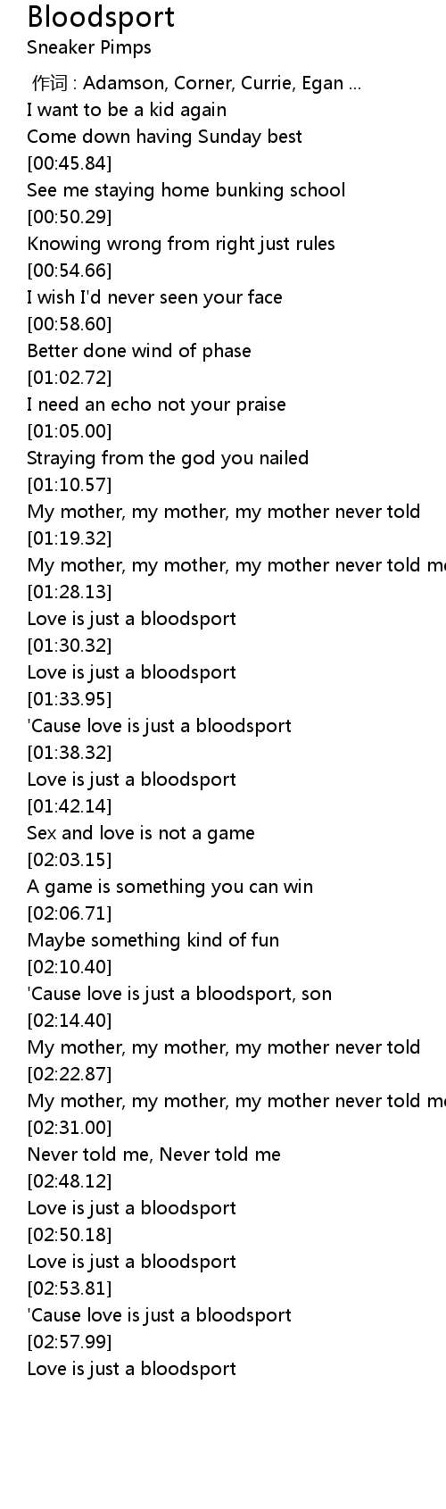 | [02:12.34] | 'Cause love is just a bloodsport, son |