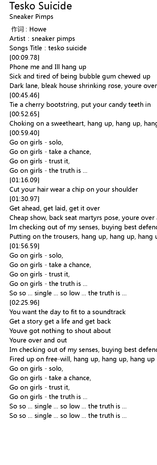 | [00:03.95] | Songs Title:tesko suicide |