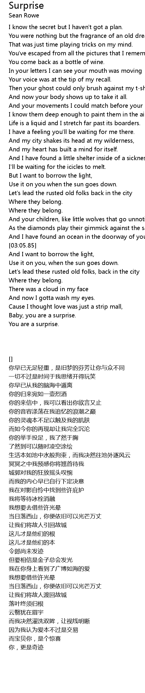 | [03:45.77] | You are a surprise. |