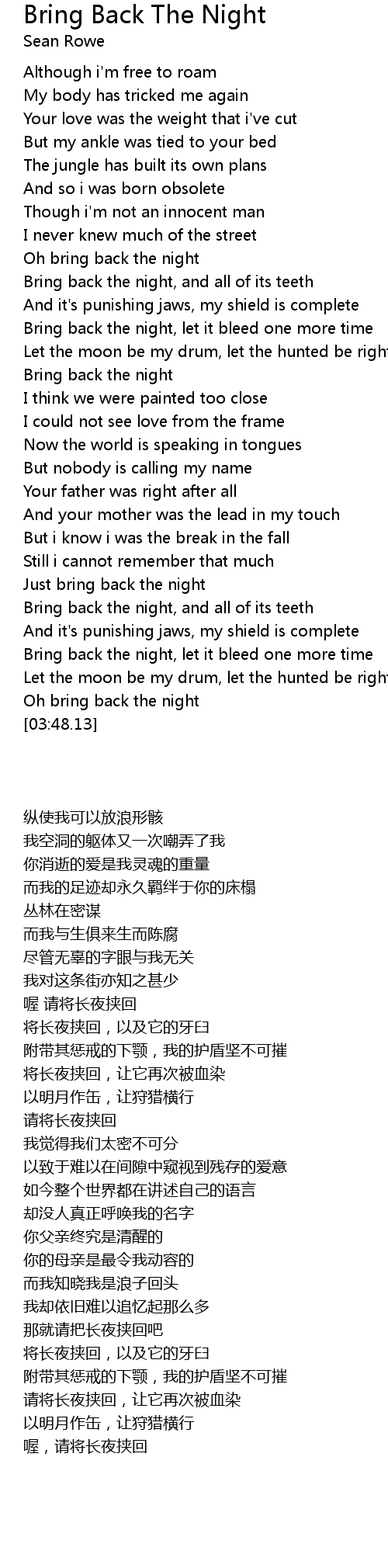 Bring back the night, let it bleed one more time |