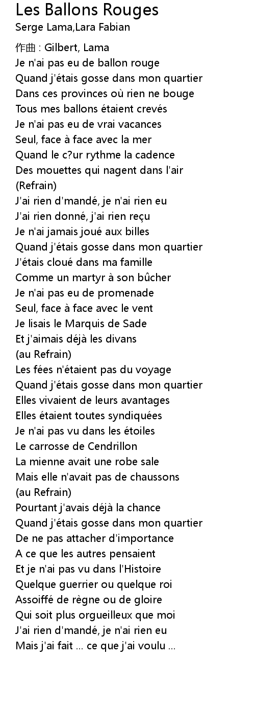 | Je n' ai pas eu de ballon rouge | |
