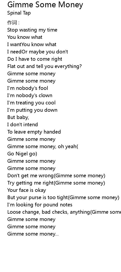 | Gimme some money, oh yeah | |
