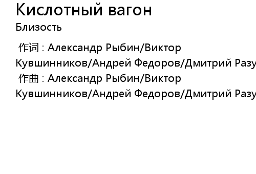 | [00:00.00-1] | 作词 : Александр Рыбин/Виктор Кувшинников/Андрей Федоров/Дмитрий Разумов |