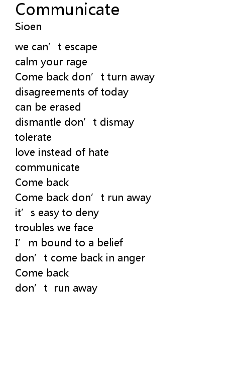| [00:00.000] | Come back don’t run away |