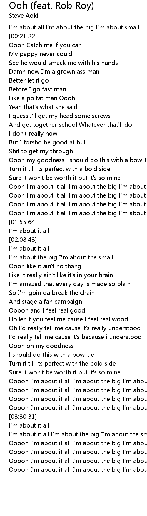 Ooooh I'm about it all I'm about the big I'm about the small |