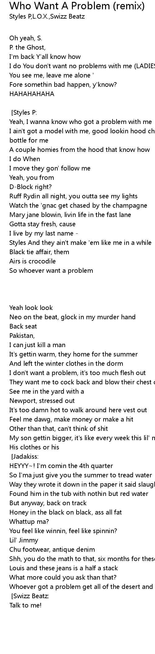 Who want a problem ha, ha? [x4] [Styles P:] |