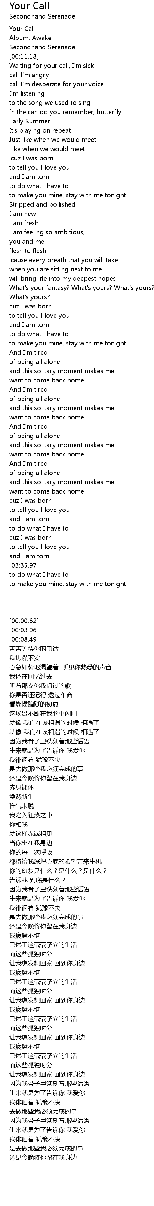 Waiting for your call, I'm sick, |