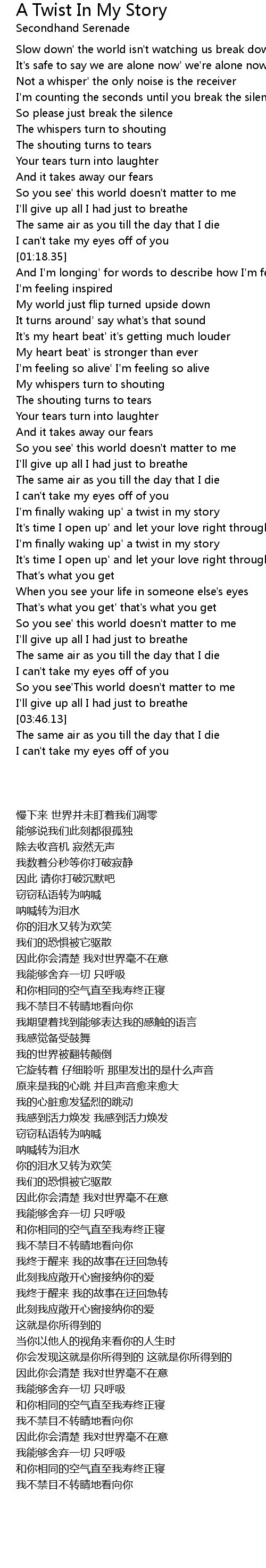 The same air as you till the day that I die |