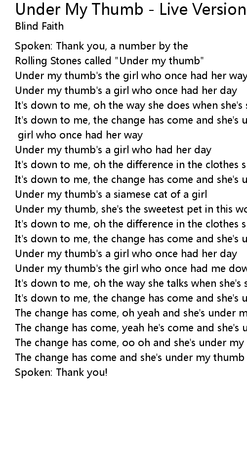 Under my thumb's that [?] girl who once had her way |