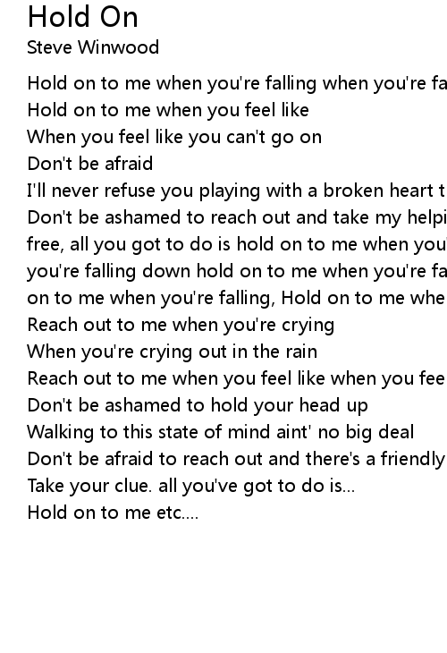 Don't be ashamed to reach out and take my helping hand it's so easy to be, to be free, all you got to do is hold on to me when you're falling hold on to me when you're falling down hold on to me when you're falling down to the ground. (Hold on to me when you're falling, Hold on to me when you're falling) |