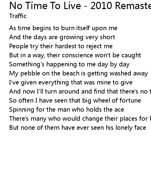 And now I'll turn around and find that there's no time to live |