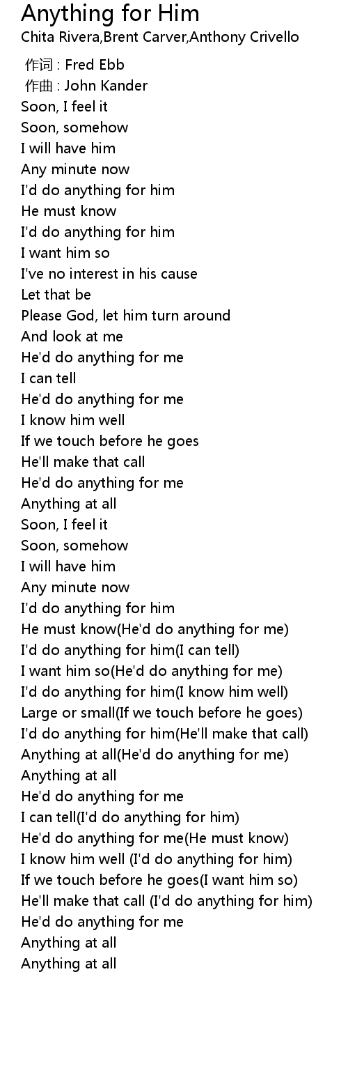| [00:30.39] | I'd do anything for him |