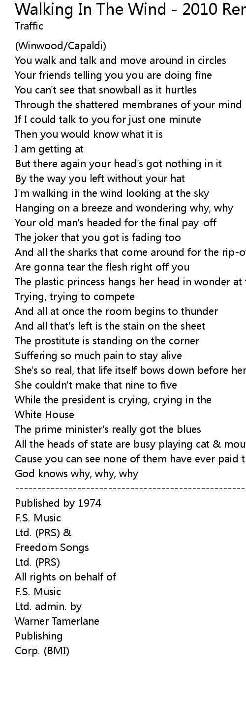 Hanging on a breeze and wondering why, why |