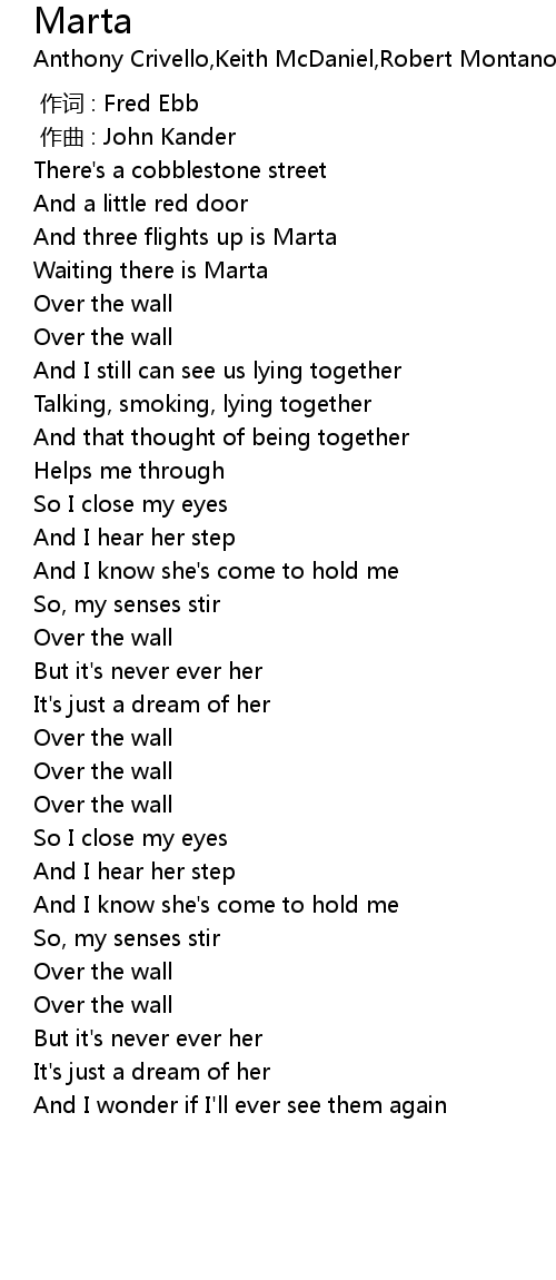 | [00:09.78] | And three flights up is Marta |