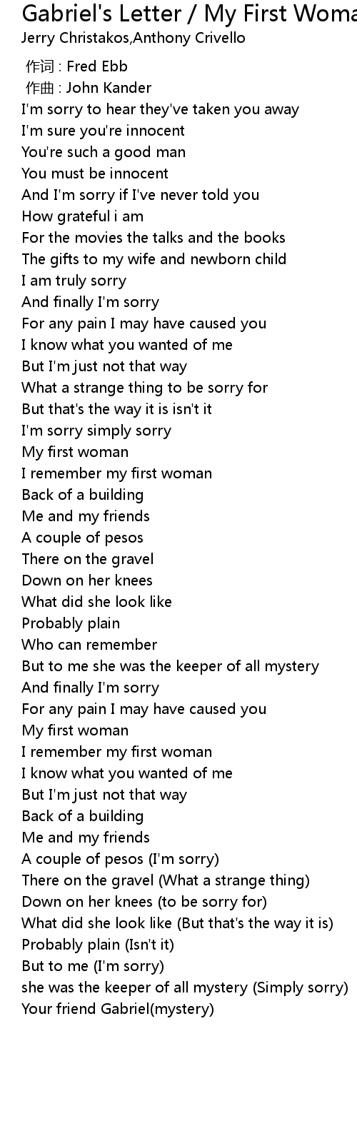 | Song | Gabriel's Letter / My First Woman |