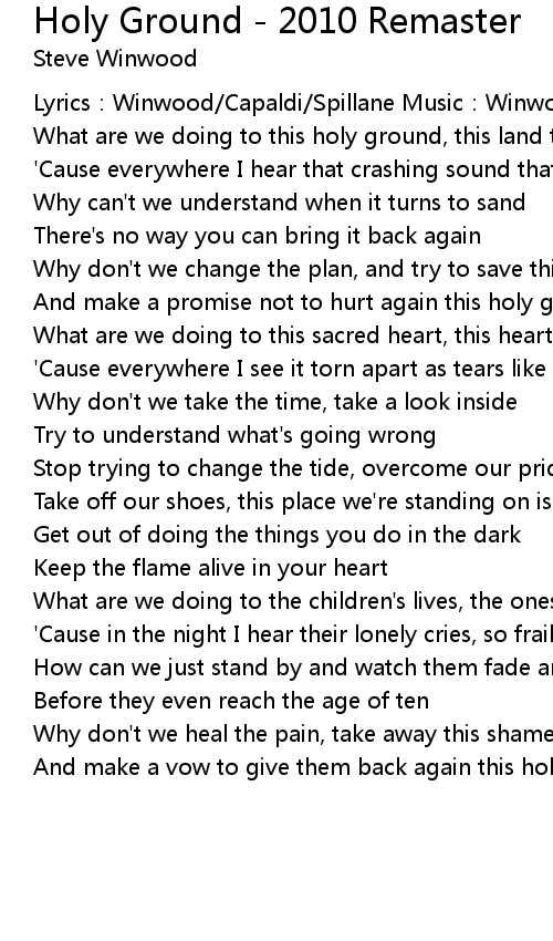 | Take off our shoes, this place we' re standing on is holy ground | |