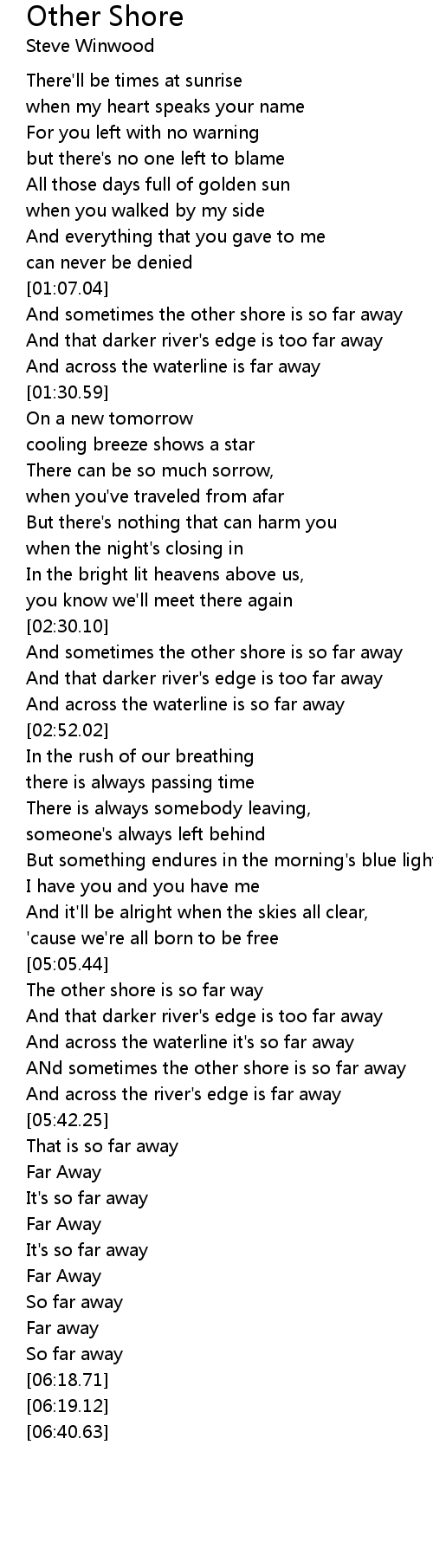 ANd sometimes the other shore is so far away |