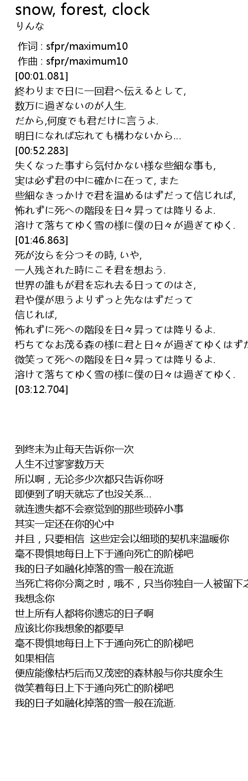 | [02:47.067] | 溶けて落ちてゆく雪の様に僕の日々は過ぎてゆく. |