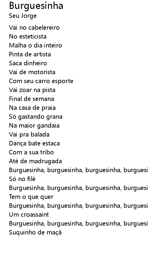 | Burguesinha, burguesinha, burguesinha, burguesinha, burguesinha | |