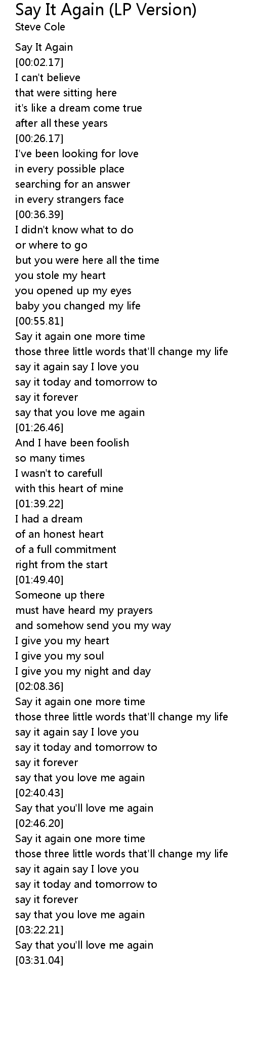 Say It Again (LP Version) Lyrics