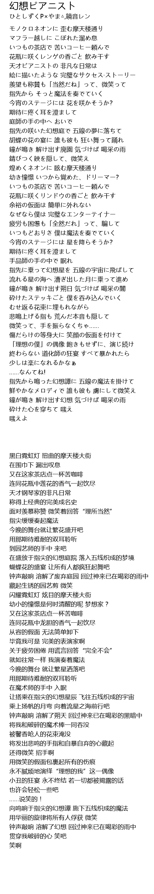 | [02:23.410] | いつもどおりさ 僕は魔法を奏でていく |