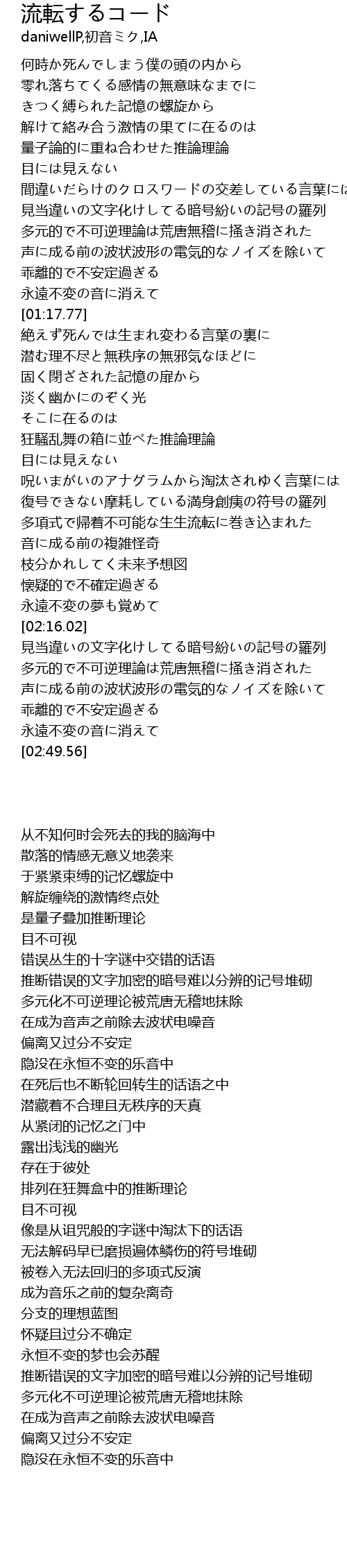 | [01:59.09] | 復号できない摩耗している満身創痍の符号の羅列 |