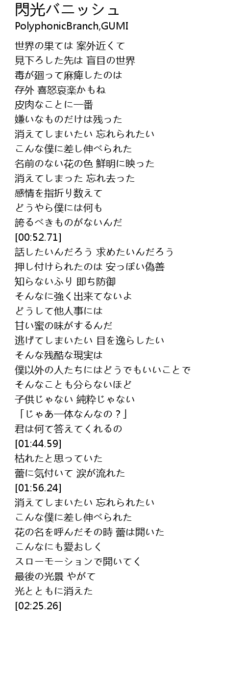 | [02:02.76] | 消えてしまいたい 忘れられたい |