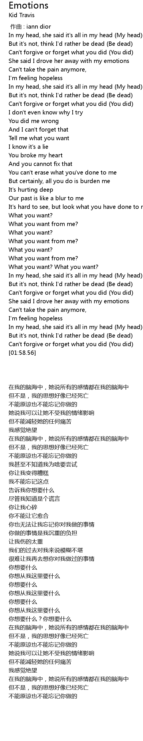 | [01:46.18] | In my head, she said it's all in my head (My head) |