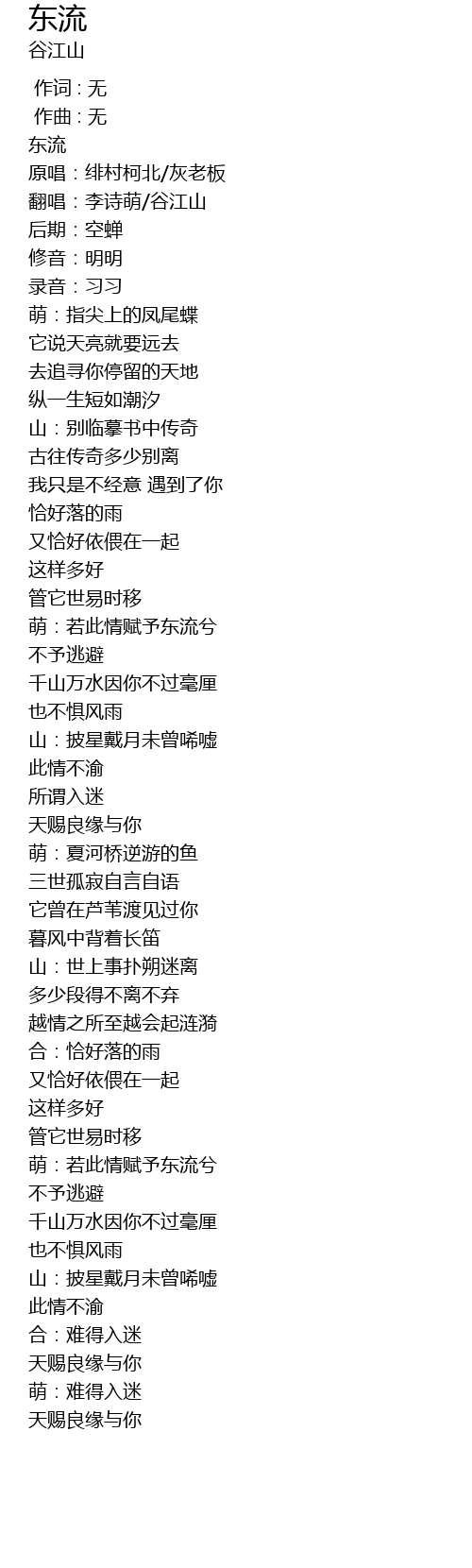 | [00:09.110] | 翻唱:李诗萌/谷江山 |