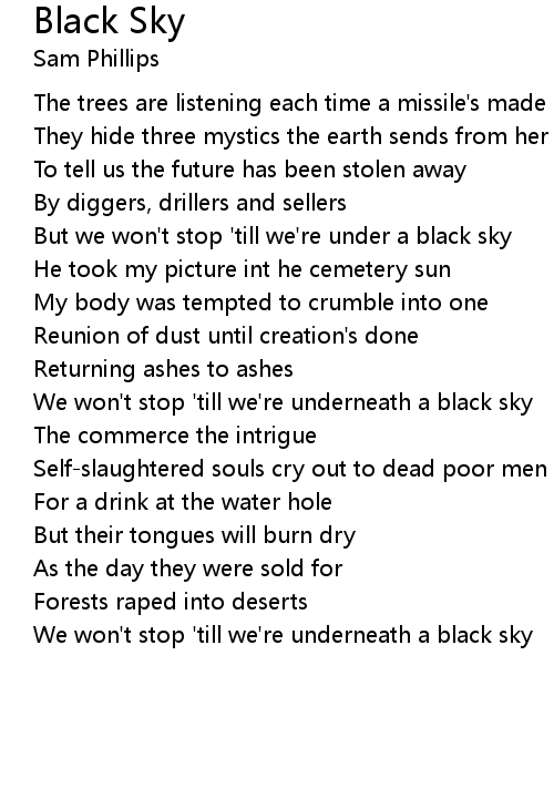 But we won't stop 'till we're under a black sky |