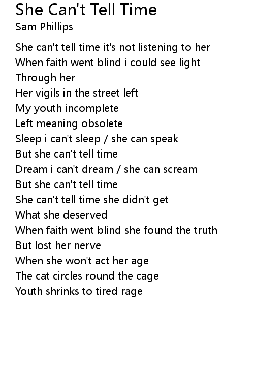 | Song | She Can't Tell Time |