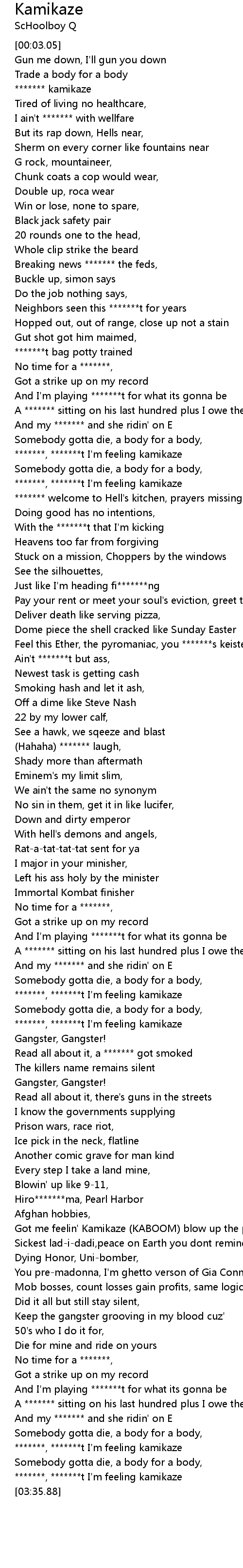 *******, *******t I'm feeling kamikaze |
