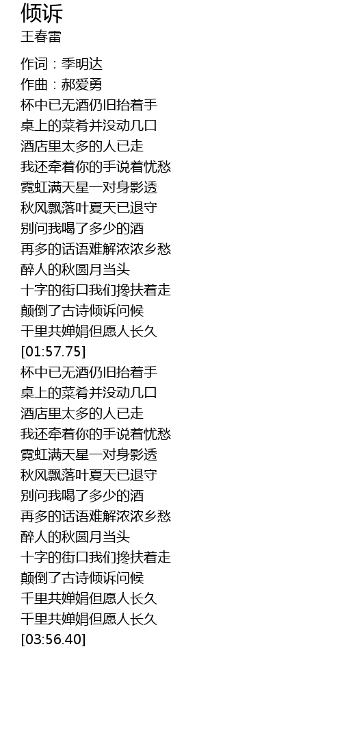 | [03:39.21] | qiān lǐ gòng chán juān dàn yuàn rén cháng jiǔ |