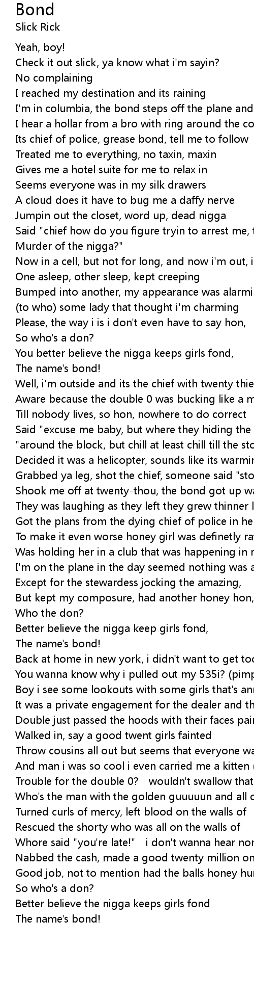 | Better believe the nigga keeps girls fond | |